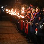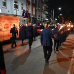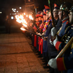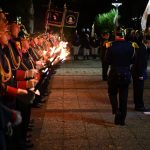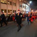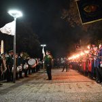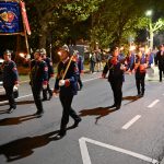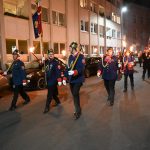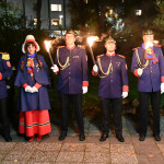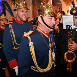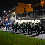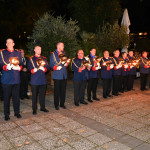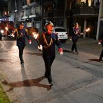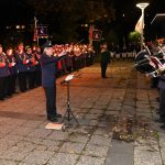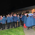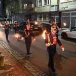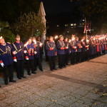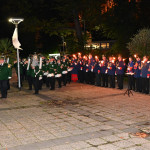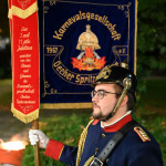 Wir begannen den Festabend mit einem Fackelmarsch durch die Burtscheider Straßen in Richtung Burtscheider Parkterrassen, wo das Orchester der freiwilligen Feuerwehr Eschweiler gemeinsam mit dem Spielmannszug „Grün-Weiß“ Lohn den großen Zapfenstreich unter den Kommandos von Präsident Adrian Cordewener vollzogen.