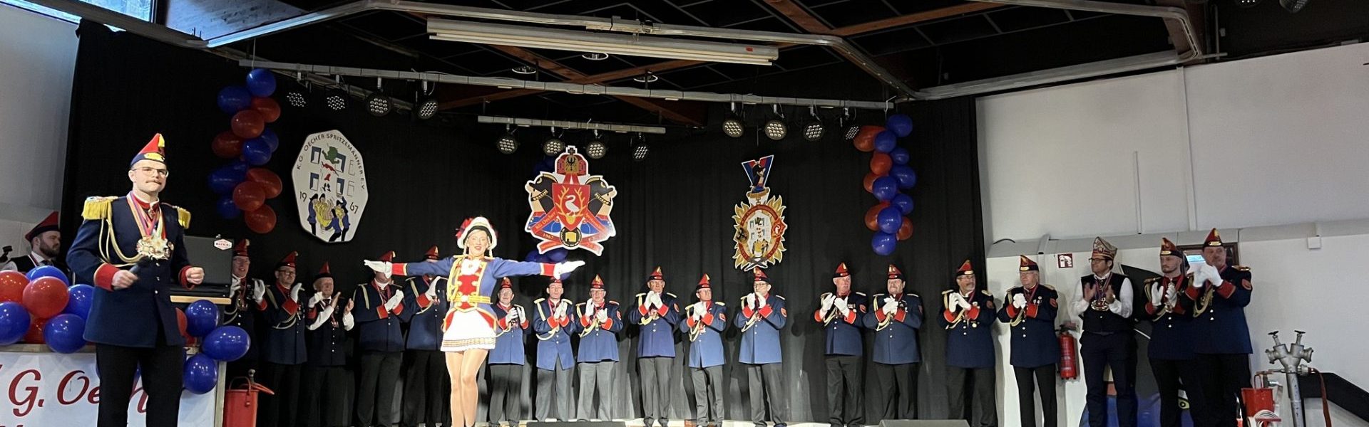 Nachdem der Glassaal der Park-Terrassen in den letzten Jahren aus allen Nähten platzte, nahm Präsident Adrian Cordewener gemeinsam mit Tanzmarie Sarah die Truppe erstmals im Burtscheider Saal ab und konnte keine Mängel feststellen.