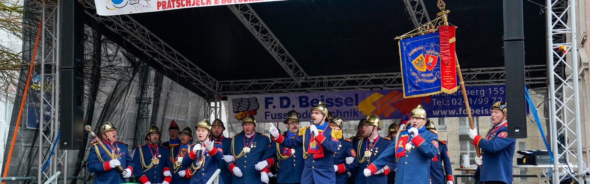 Nach dem im vergangenen Jahr doch sehr verregneten Wetter, durften wir in diesem Jahr pünktlich um 11 Uhr 11, mit voller Mannstärke und bei trockenem Wetter, die Bühne auf dem prall gefüllten Burtscheider Marktplatz entern.