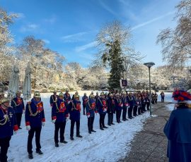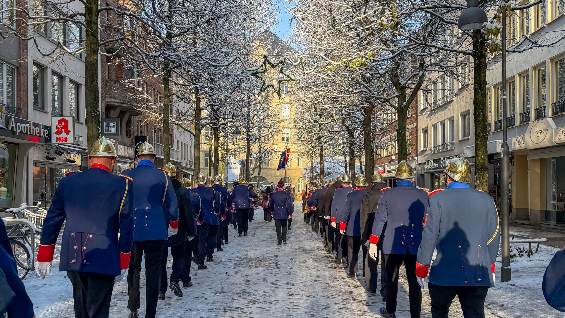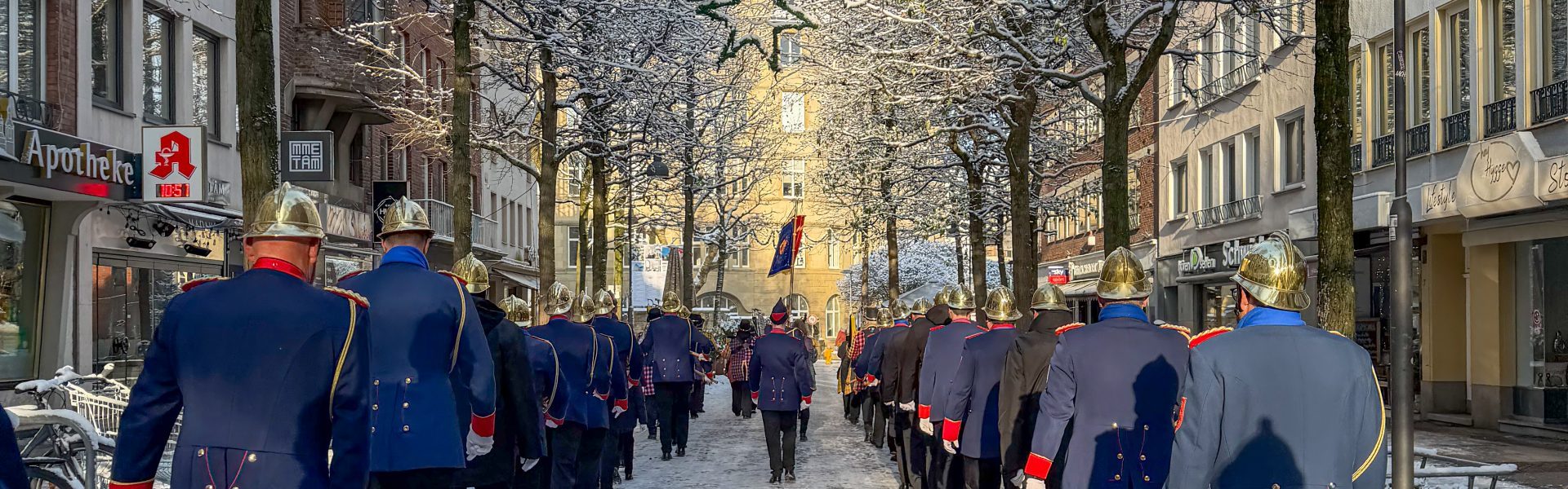 In gewohnter Manier trafen sich die Spitzemänner morgens in der Altdorfstraße um bei Berni „Im Backhaus“ sich mit einem ausgiebigen Frühstück auf den Tag einzustimmen. In Begleitung des Trommler- und Pfeiferkorps Aachen Burtscheid marschierten wir trotz eisiger Temperaturen bei strahlendem Sonnenschein durch unseren Stadtteil hin zum Standquartier.