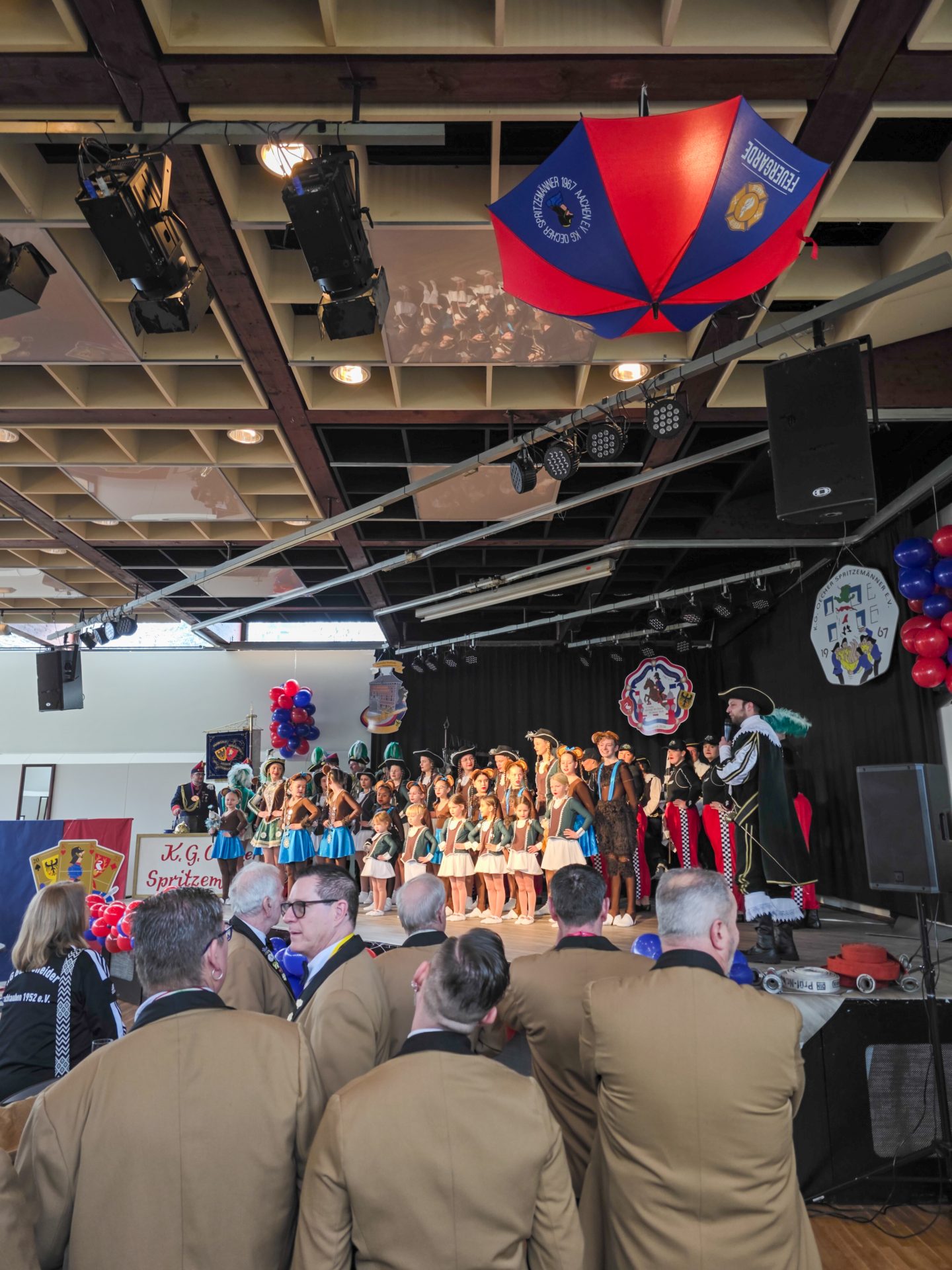 Auch wenn für das neugegründete Herrentanzkorps der Spritzemänner an diesem Tag kein Einsatz geplant war, revanchierte sich der Kommandant der Prinzengarde Richterich für die Aufforderung zum Tanz am Vortag und forderte unsere Herren auf, beim Tanz der Richtericher Gardisten mitzuwirken. Mit Humor und Spaß wurde die Challenge gemeistert, sehr zur Freude aller Anwesenden im Saal.