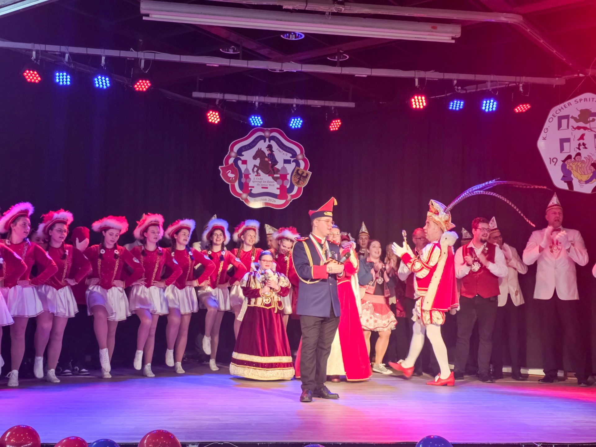 Durch das Programm führten an diesem Tag Präsident Adrian Cordewener zusammen mit unserem neu ernannten Vize-Präsidenten Mats Frische. Zum Auftakt heizte der frisch proklamierte Prinz Lukas I. zusammen mit seinem Hofstaat den Saal ein und gab seine Prinzenlieder zum Besten. Im Folgenden traten mit den KG Burtscheider Lachtauben und den KG Benediktiner Jonge befreundete Vereine aus Burtscheid auf, ehe die Bühne der KG Klev Botze aus Rollesbroich, der Rathausgarde Öcher Duemjroeve, den Rot-Weissen Funken Beggendorf überlassen wurde. Die Vereine 1. KG „Koe Jonge“ Richterich, die Prinzengarde Richterich zusammen mit ihrer Prinzessin Anne I. machten den Abschluss eines gelungenen Tages.
