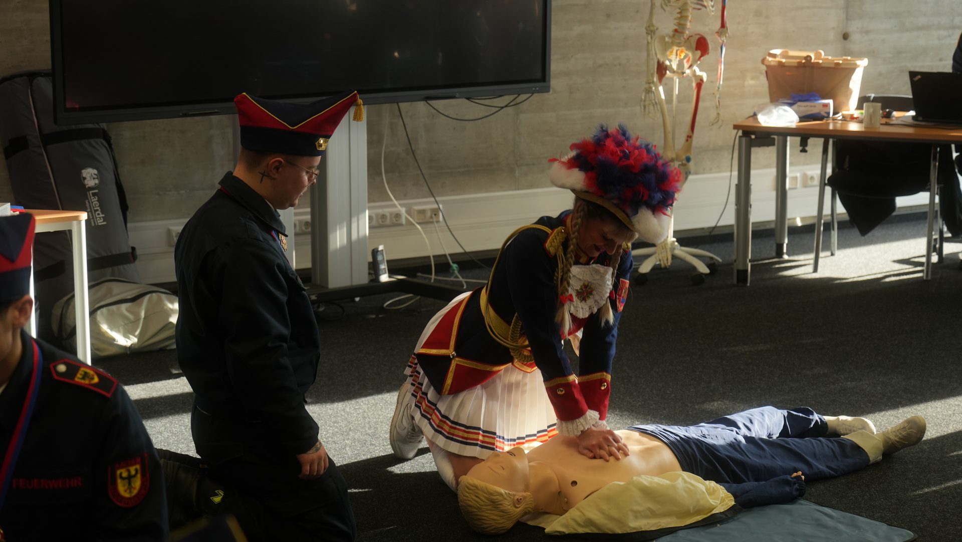 Im ersten Jahr waren wir mit dem AKiKa auf der Leitstelle der Feuerwehr Aachen. Im zweiten Jahr besuchten wir gemeinsam das Floriansdorf. Beim dritten Mal ist es Tradition!Und so kam am Sonntag Märchenprinz Phil II. zusammen mit seinem Gefolge auf Einladung der Spritzemänner in die Rettungsdienstschule der Stadt Aachen.