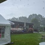 Zugegeben, hatten wir in diesem Jahr bei der Wetterbestellung wohl die falsche Taste gedrückt – statt Sonnenschein gab es reichlich Regen. Doch echte Karnevalisten lassen sich davon nicht aufhalten! Und so füllte sich die Wiese trotz des wechselhaften Wetters schnell mit vielen befreundeten Vereinen, Freunden und Gästen. Immerhin schaute die Sonne zwischendurch doch mal vorbei, um einen kurzen Gruß zu hinterlassen und Adrian Cordewener führte uns durch das Bunte Programm als würde die Sonne durchgehend scheinen.
